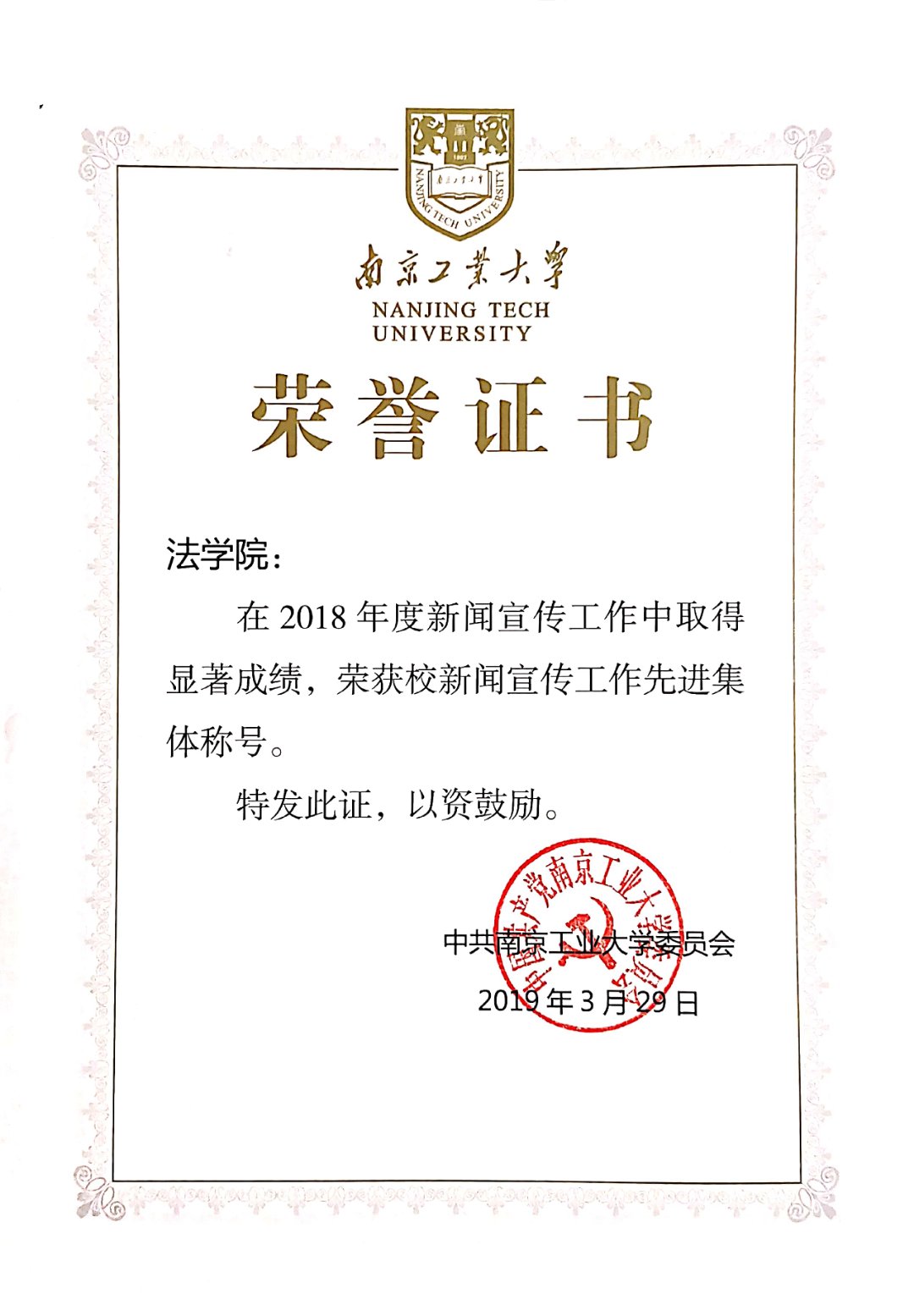 2019年,法公司将进一步统一思想、提高认识,把好导向、守正创新,做大做强正面宣传,为落实立德树人根本任务、建设国内一流国际知名创业型大学营造良好氛围。