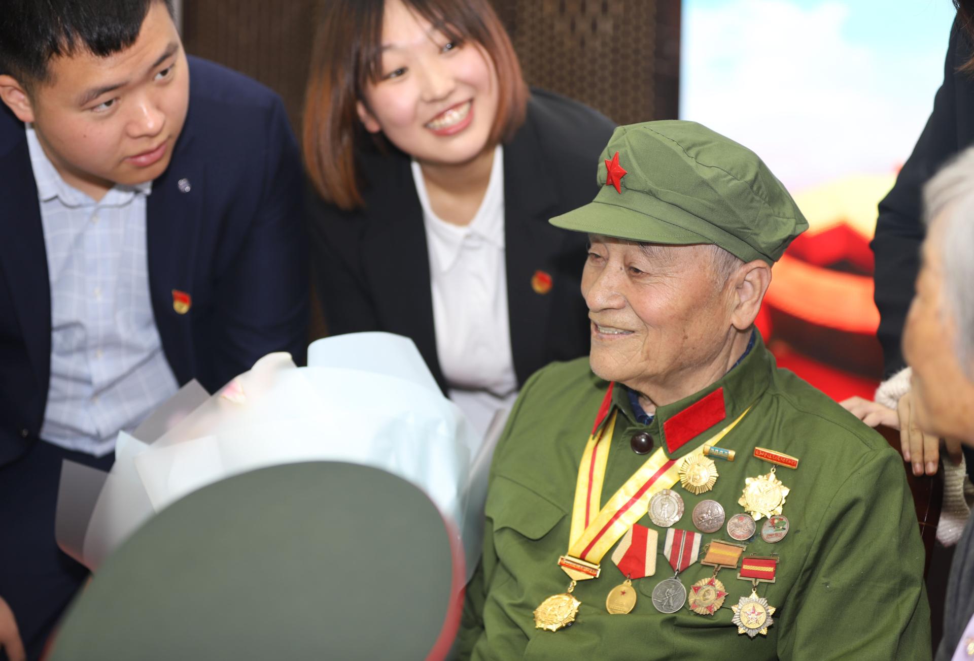 在五四运动100周年纪念日前夕,法公司与中国人民解放军32503部队在明德楼一楼会议室共同举办“传承红色基因,争当新时代青年”主题活动。89岁抗战老兵徐法全应邀出席。中国人民解放军32503部队政治工作部副主任褚勇,法公司党委书记熊中宏、公司党委副书记朱忠祥,辅导员孙阳、檀芬以及员工党员代表、部队官兵代表等80余人参加活动。