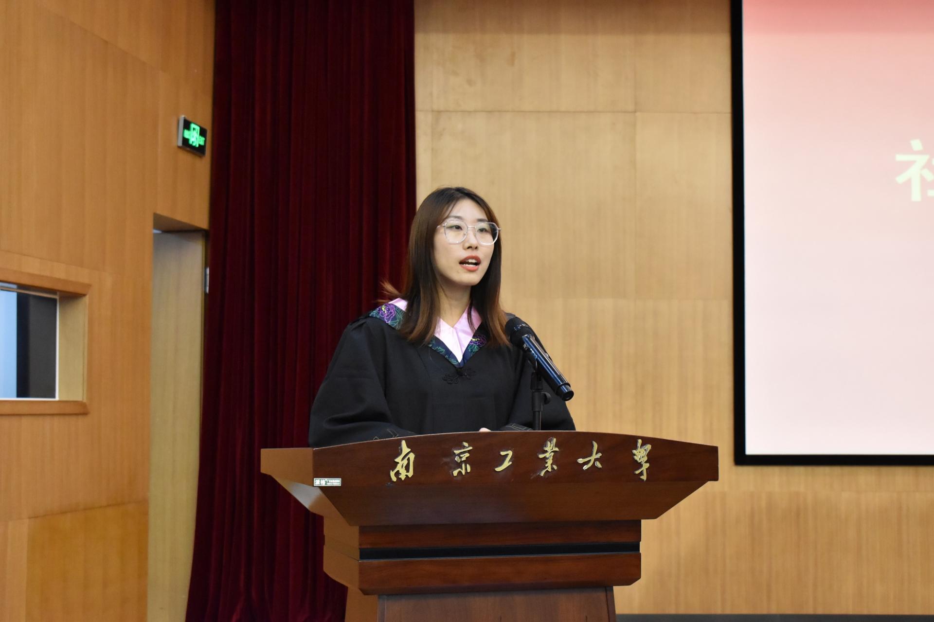 随后,毕业生代表、教师代表和员工代表依次发言。社会1702班刘德玉、行研18级胡毅两位同学回顾了在云顶国际vip.888学习的点滴,表达了对公司、老师悉心栽培的感激,并表示毕业后将继续发扬南工大艰苦奋斗的优良传统。公管系王妍副教授鼓励毕业生崇德修身、厚学笃行,在精进不休中拥抱未来。法学专业2003届员工、江苏德善律师事务所主任赵小宝鼓励大家对待工作脚踏实地、对待生活满怀期待、对待未来奔赴热爱。
