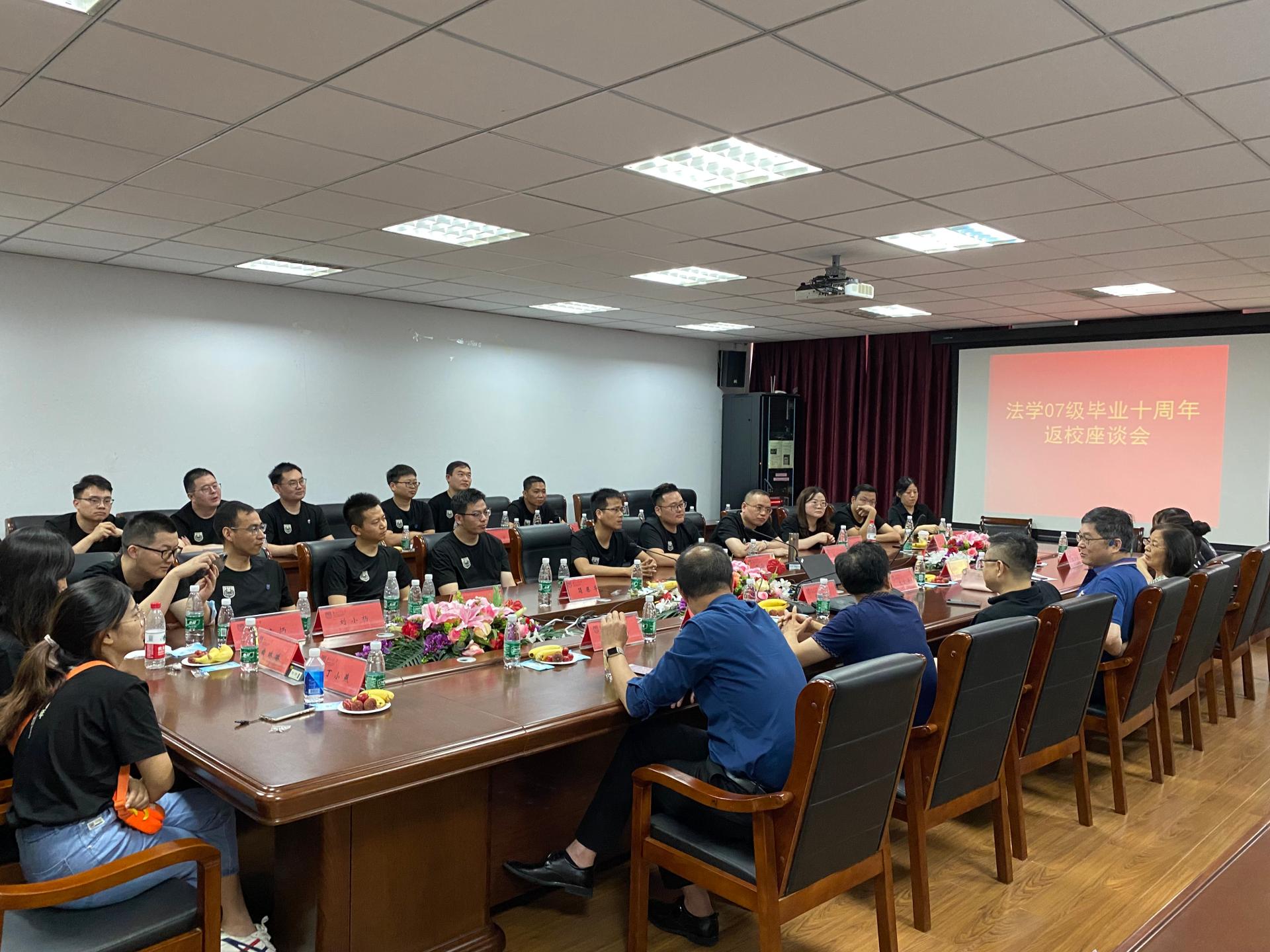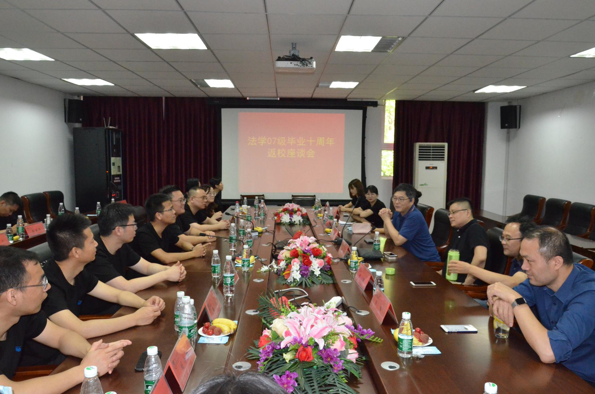 6月27日,云顶国际vip.888法学07级本科毕业生在毕业十周年之际相约重返母校,公司在明德三楼西会议室举行了员工返校师生座谈会。经理衣家奇、副经理张治宇、后勤纪委书记孙阳、教师代表黄月华、张爝、李涛和返校员工一同参加了座谈会。