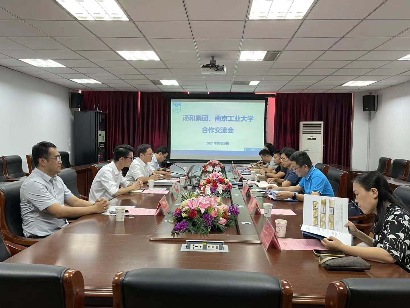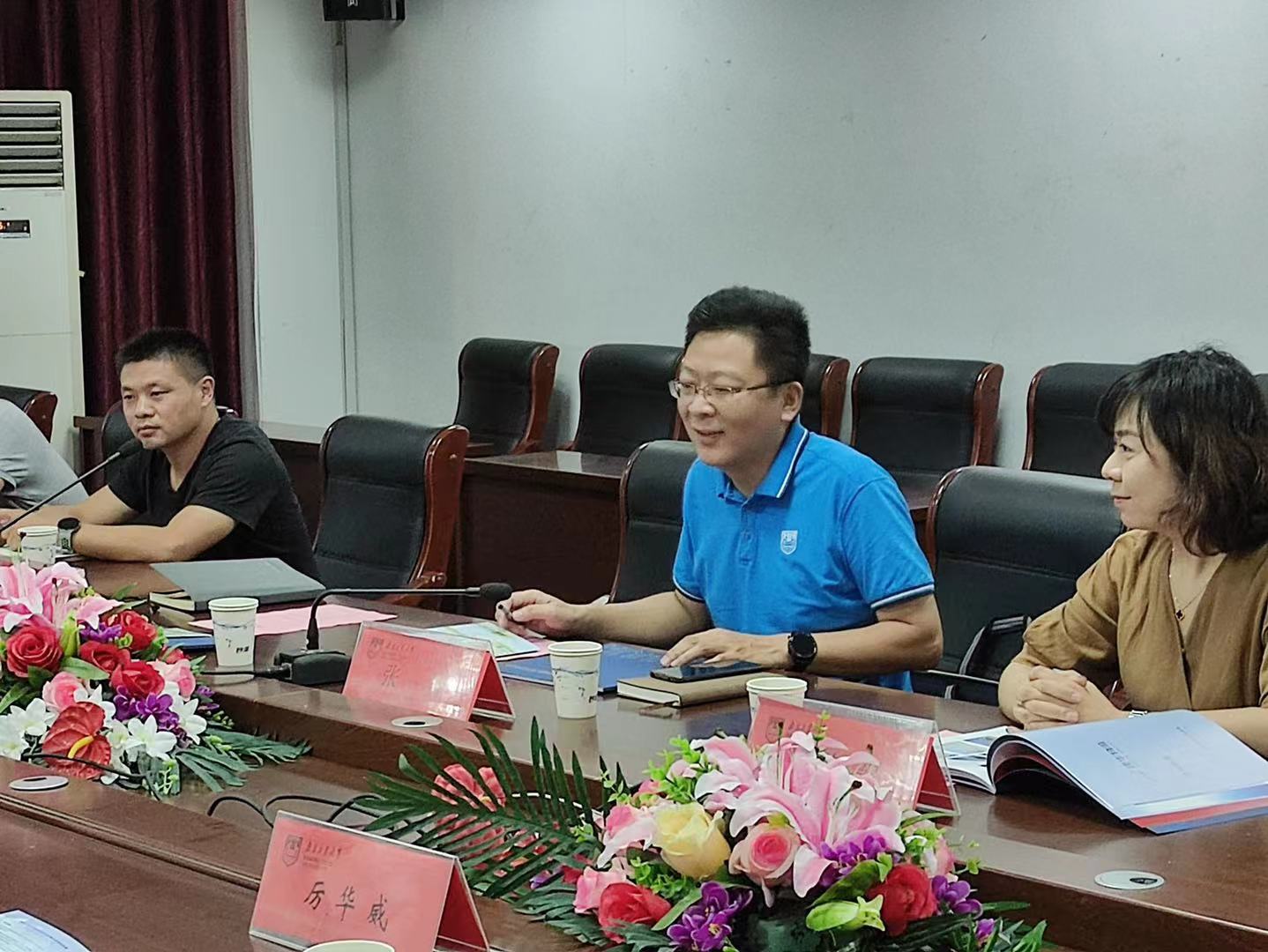 熊中宏书记对闫雷总监一行来校表示热烈欢迎,介绍了公司围绕新文科建设,结合“十四五”计划要求,在团队建设、人才培养、社会服务方面的总体设想,期待公司资源和社会资源良性互动,建立合作机制,形成双赢效果。员工工作处副处长张翔介绍了公司就业前景与历年数据,对汤和集团提供相关平台表示感谢,期待企业力量深度参与专业建设,形成人才培养特色,并将企业文化引入校园,帮助员工提前感受社会需求。公管04级员工、汤和集团人力资源总监闫雷分享了汤和集团的发展历程、服务范围、重点项目,提出建立“建华特色班”等设想,希望合作走深走实,服务企业,贡献公司,形成品牌。
