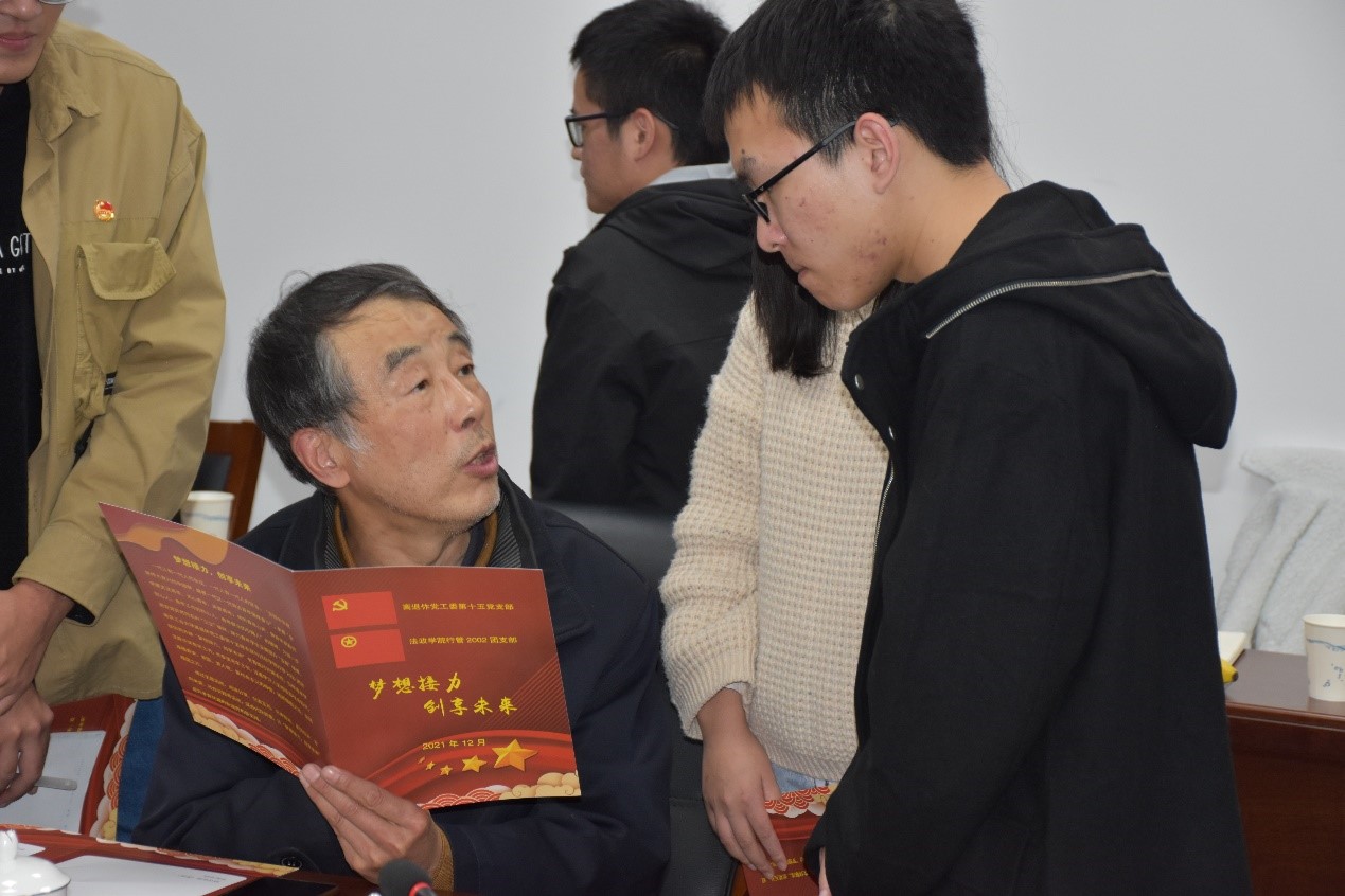 12月6日,云顶国际vip8866离退休党工委第十五党支部与云顶国际vip.888行管2002班团支部开展了主题为“梦想接力 创享未来”的老青结对共建活动,离退休党工委书记阳辉,法政公司党委书记熊中宏、党委副书记姜志兵、辅导员闫志华等应邀出席活动,并和青年学子们进行了点对点交流。