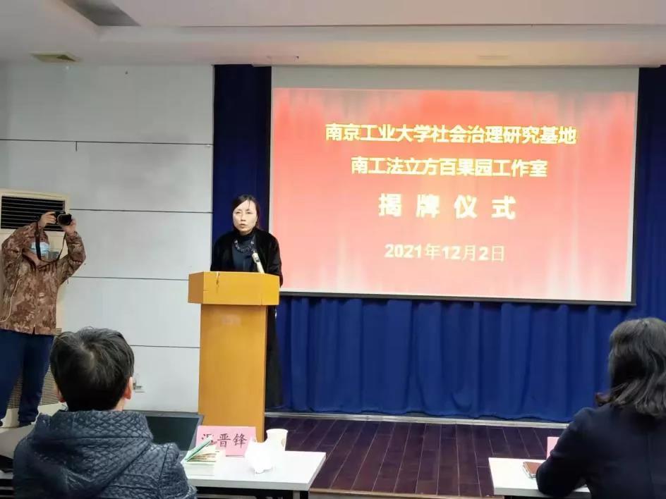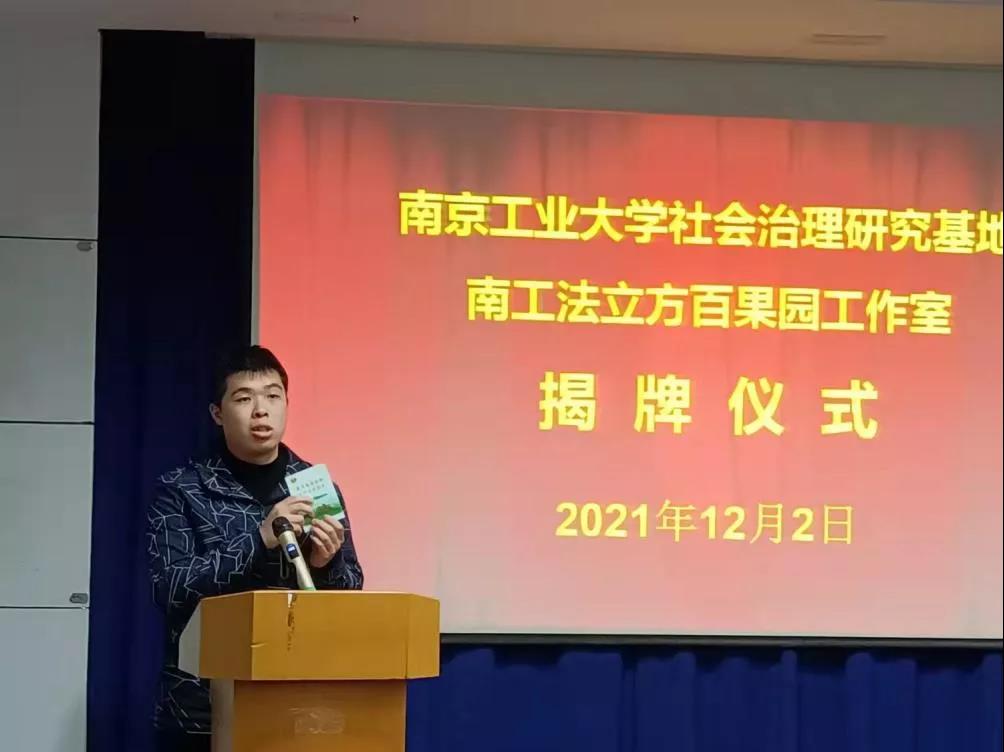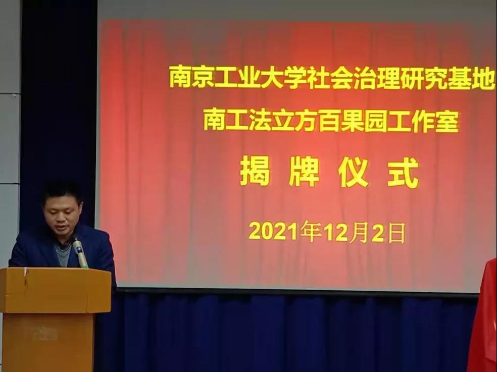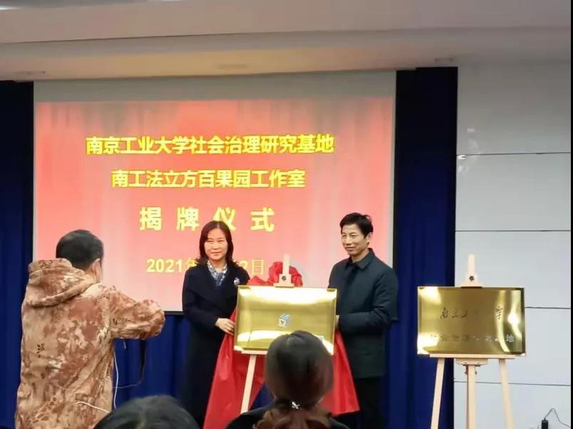 云顶国际vip8866法政公司党委副书记姜志兵介绍了“法立方”、“百果园工作站”品牌对接情况。谈国苹、熊中宏共同为“南工法立方百果园工作室” 、“云顶国际vip8866社会治理研究基地”揭牌。