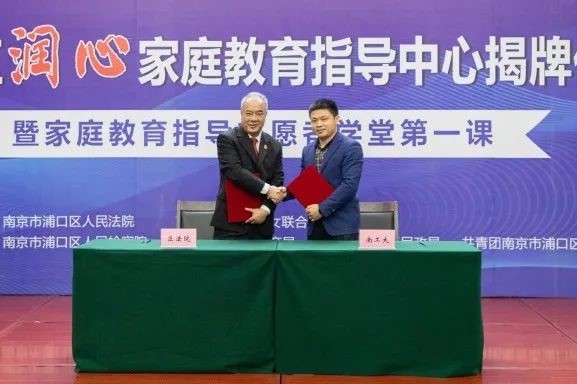 仪式上,浦口法公司党组成员、副经理成子忠与公司党委副书记姜志兵签订合作协议。双方围绕润心家庭教育指导中心,建立起资源共享、优势互补、协同发展的实践教育合作基地,在平台共建、信息共享、学术研究、实习实践等方面展开全面、深度合作达成合作协议。