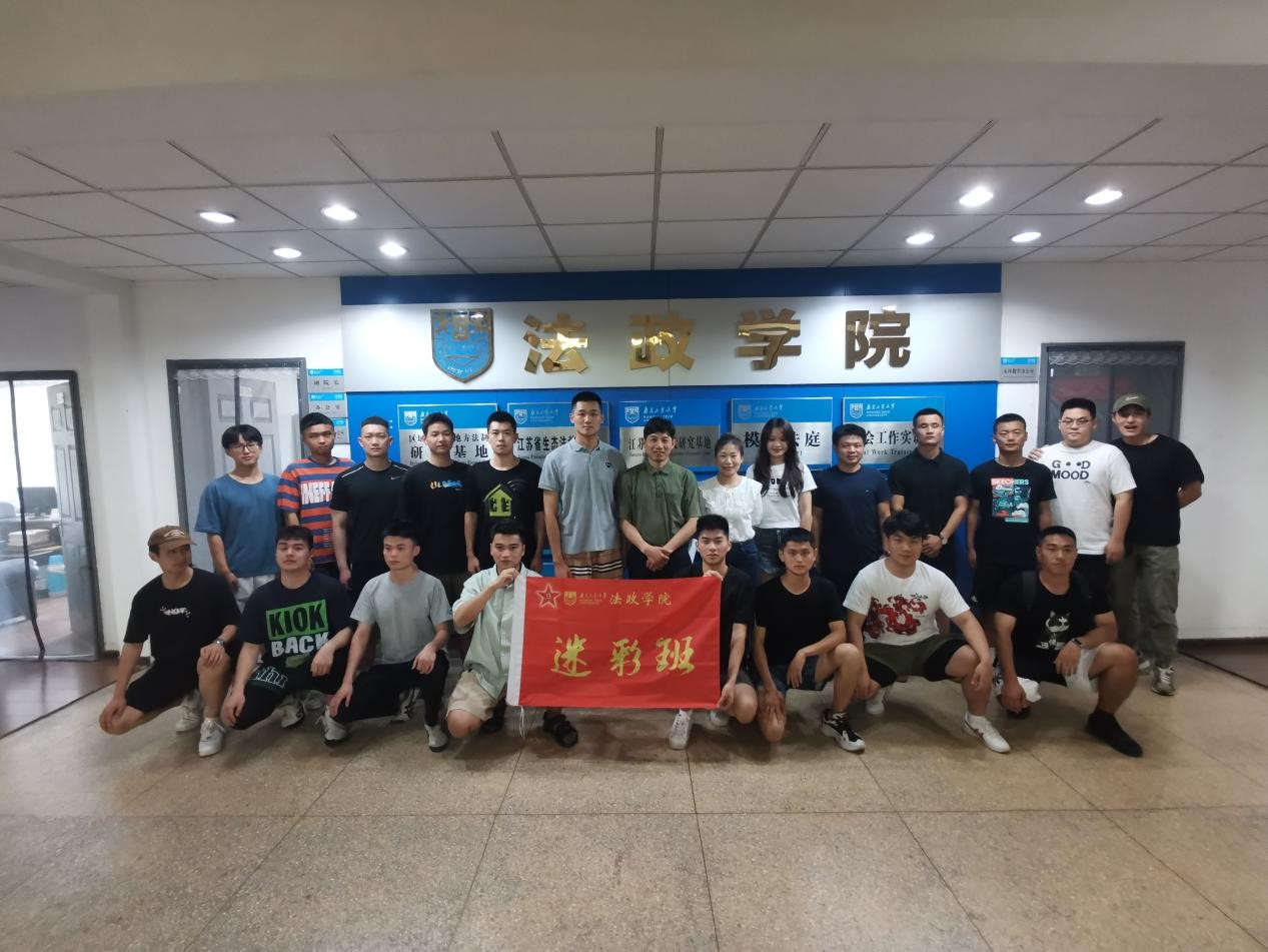 校国防教育科王琪老师介绍了退役士兵优待政策,对诸如考研、就业等相关士兵计划做出了详细解读,并对退役老员工的校园学习生活提出了自己的意见建议。班主任熊中宏老师向迷彩班授班旗,全体退役老员工起立并向班旗致军礼。