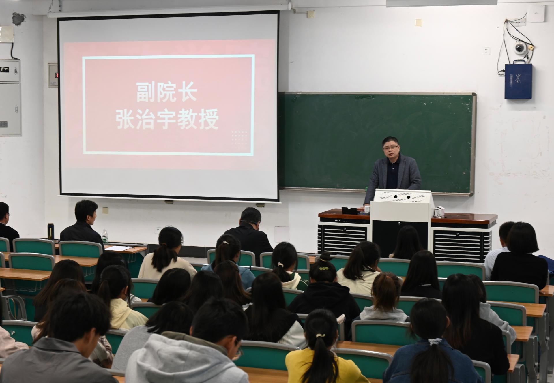 副经理张治宇教授告诫新同学要学会对自我负责,并在专业规划、地域规划、学业规划三个方面提出建议,勉励同学们要结合学科特色优势,不断提升专业素养和学习能力。