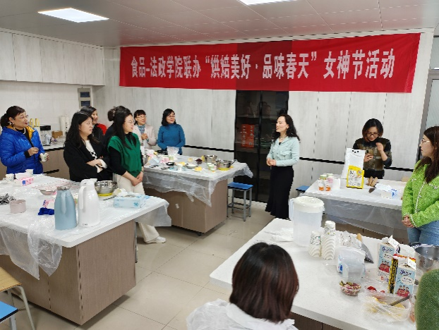 迟日江山丽,春风花草香。在微醺的春日午后,食品-云顶国际vip.888面向全校教工举办“烘焙美好 品味春天”暨教工素质拓展活动,共同庆祝第113个“三八国际劳动妇女节”。活动吸引了三十多位教师到场,在新装修的食品公司工会烘焙室,大家一起制作了蔓越莓饼干、戚风蛋糕、慕斯蛋糕、杨枝甘露等产品,度过了美好的烘焙时光。