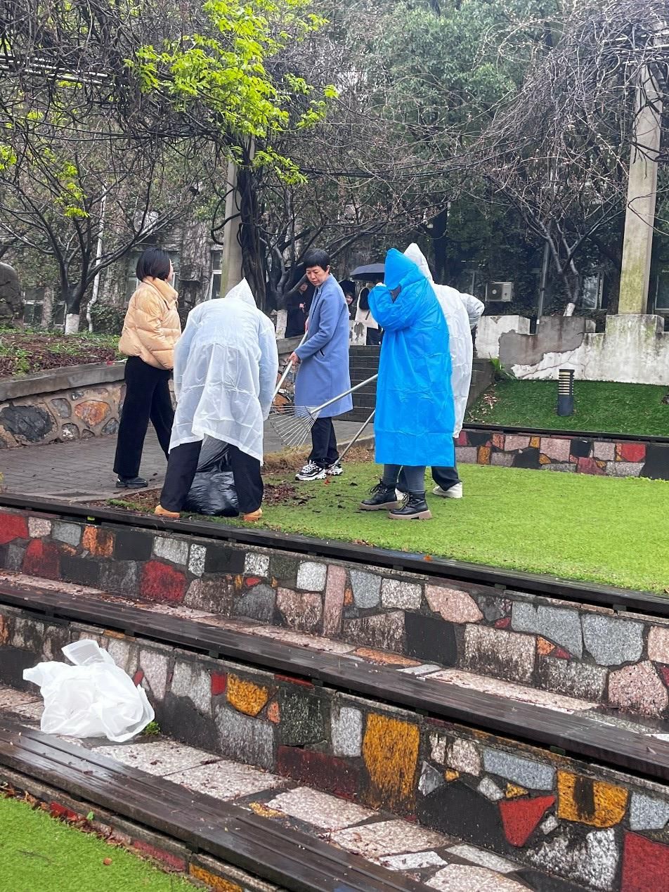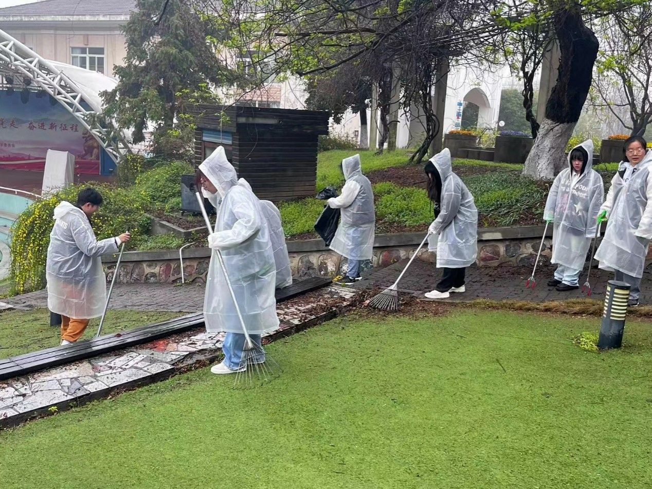 本次活动,云顶国际vip.888主要负责明德楼、音乐台、雅集馆、明如新斋区域的卫生打扫。天空虽下起蒙蒙细雨,但也抵挡不住大家的十足干劲。同学们合理分工,配合积极,用长柄耙子、扫把、垃圾夹子等工具认真打扫地面,仔细清洁角落。通过对负责区域内的人行道、绿化带以及建筑物周围的全面清理,春雨之中干净的环境,别有一番清新的韵味。