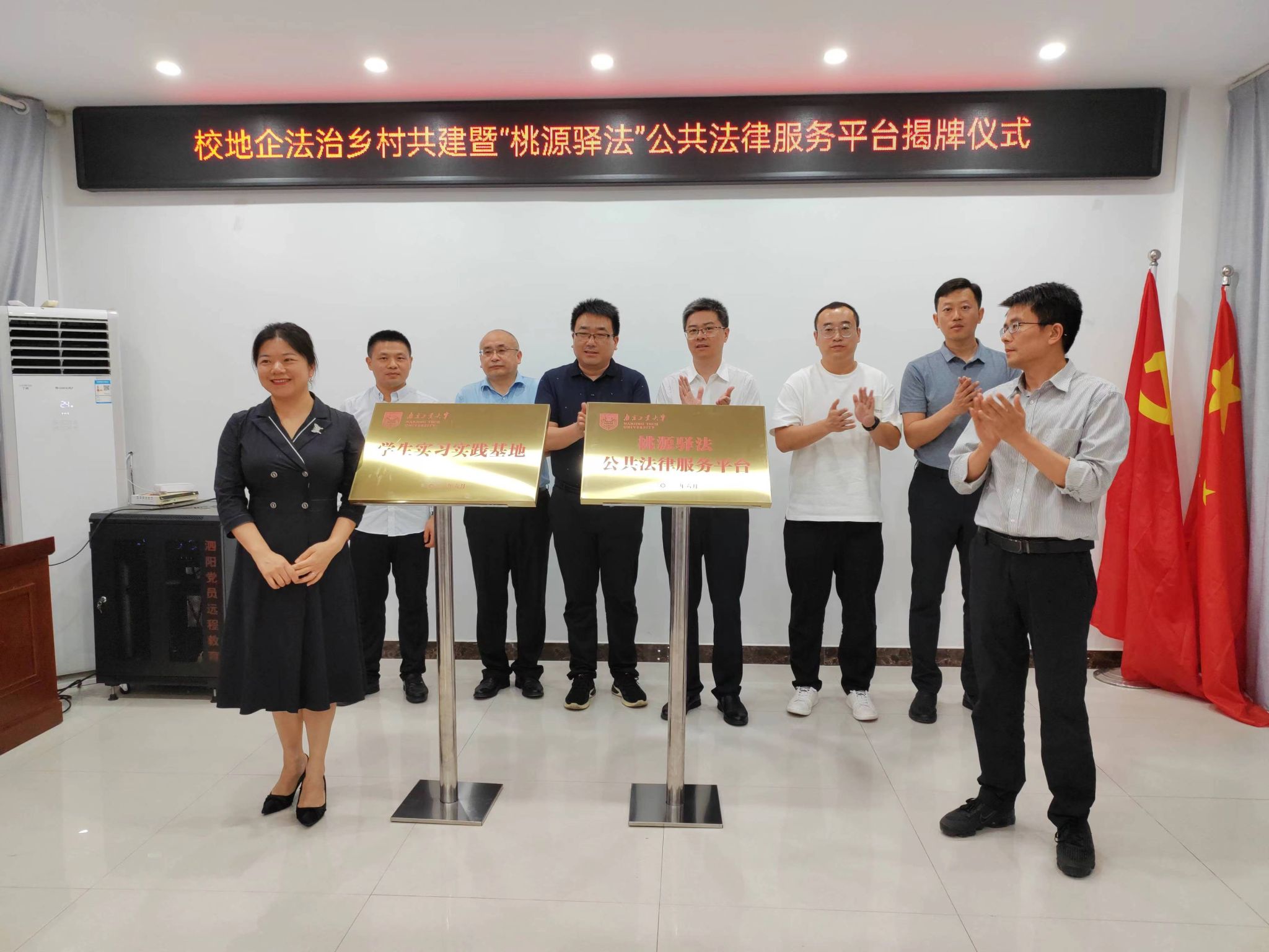 随后,校地企三方领导共同为“桃源驿法”公共法律服务平台、“员工实习实践基地”揭牌。