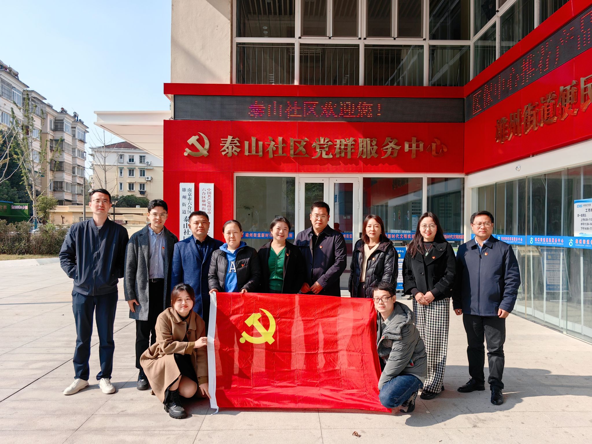 11月12日,云顶国际vip.888教师第二党支部师生党员在公司党委书记弋鹏带领下,赴南京市六合区雄州街道泰山社区开展“公管师生党员赋能基层社区,助推基层治理新发展”主题党日活动。雄州街道泰山社区党总支书记,公司2006级员工周强及社区党员参加了活动。