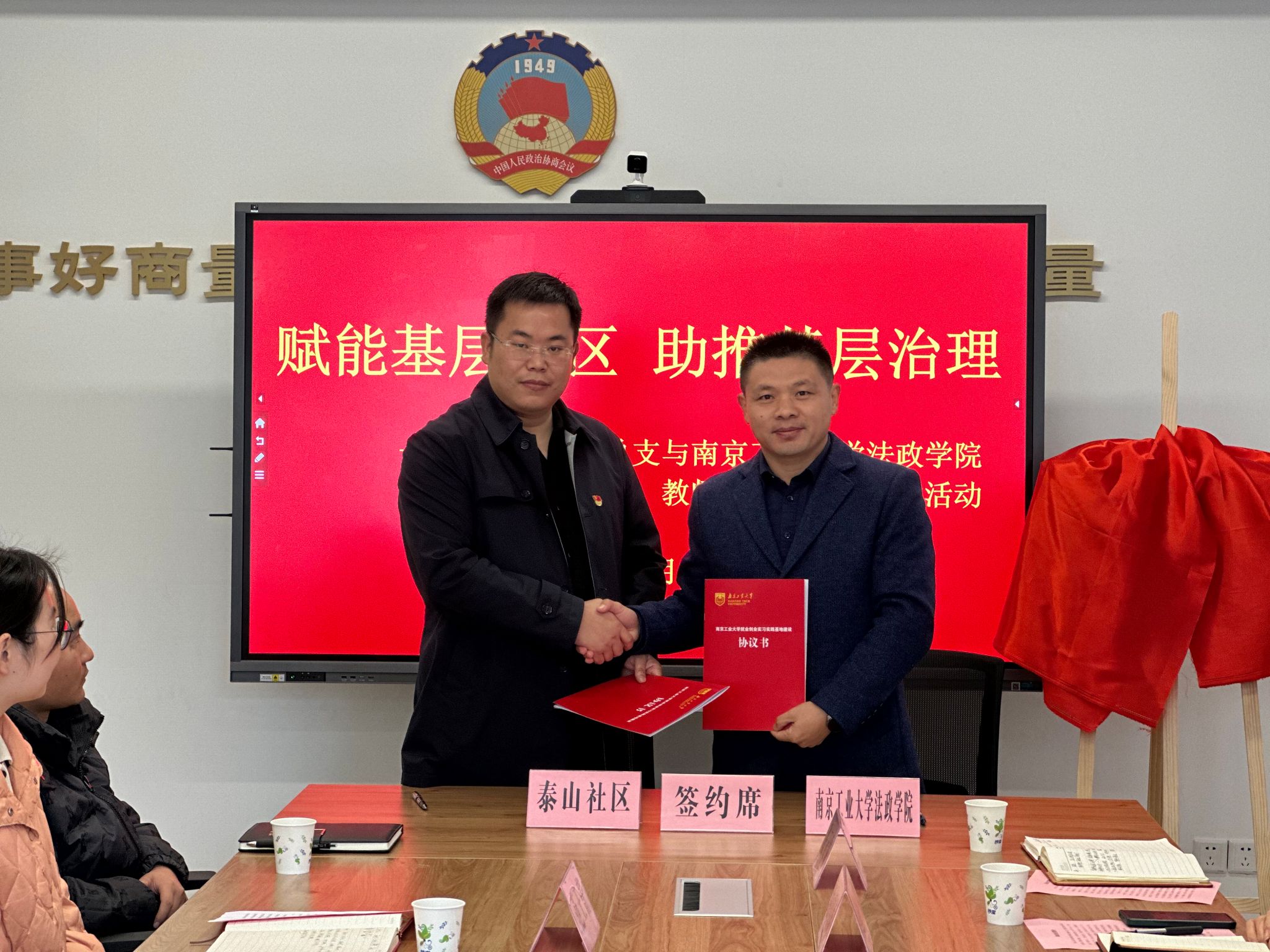 会上,双方签署了《就业创业实习实践基地建设协议》,弋鹏书记为南京市六合区雄州街道泰山社区授牌“云顶国际vip8866就业创业实习实践基地”。
