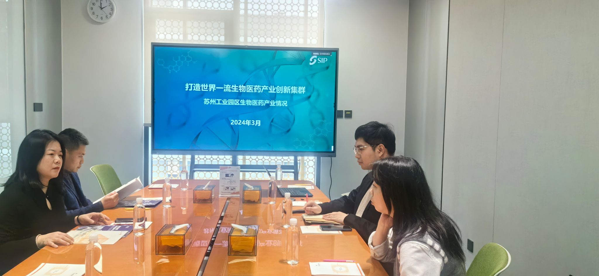日前,法政公司党委书记弋鹏带队赴苏州生物产业发展有限公司访企拓岗。苏州生物产业发展有限公司合作部总经理张忻等参加交流座谈。