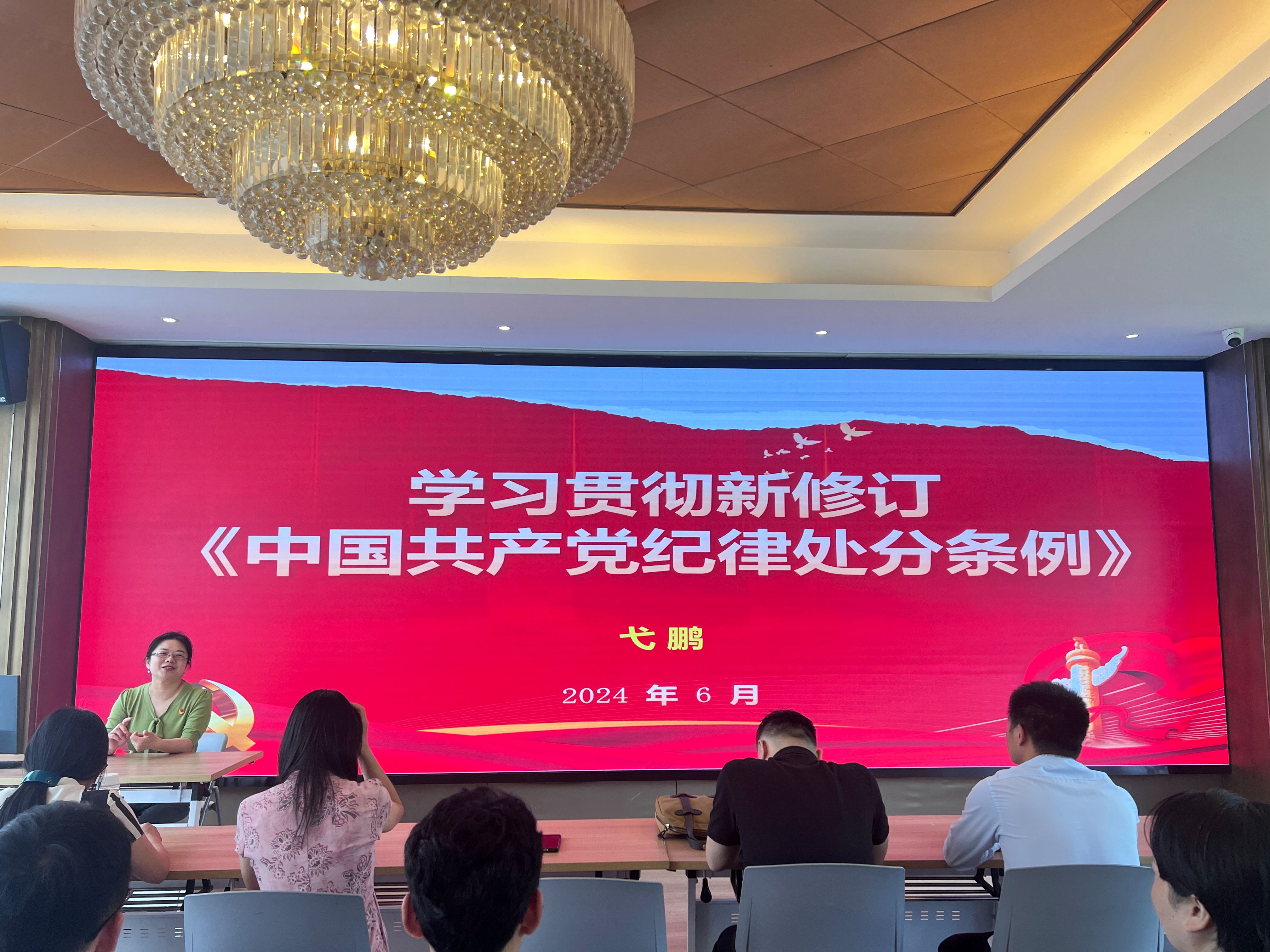 参观结束之后,教师党员集体观看了廉政教育短片《古雄莲韵》,教育大家要以莲为榜样,像莲一样生长,以清正廉洁的姿态谱写党风廉政建设新篇章。随后,公司党委书记弋鹏为全体教师党员讲授新修订《中国共产党纪律处分条例》并以实际案例来警醒各位教师党员加强自身党性修养,时刻绷紧廉洁自律这根弦。
