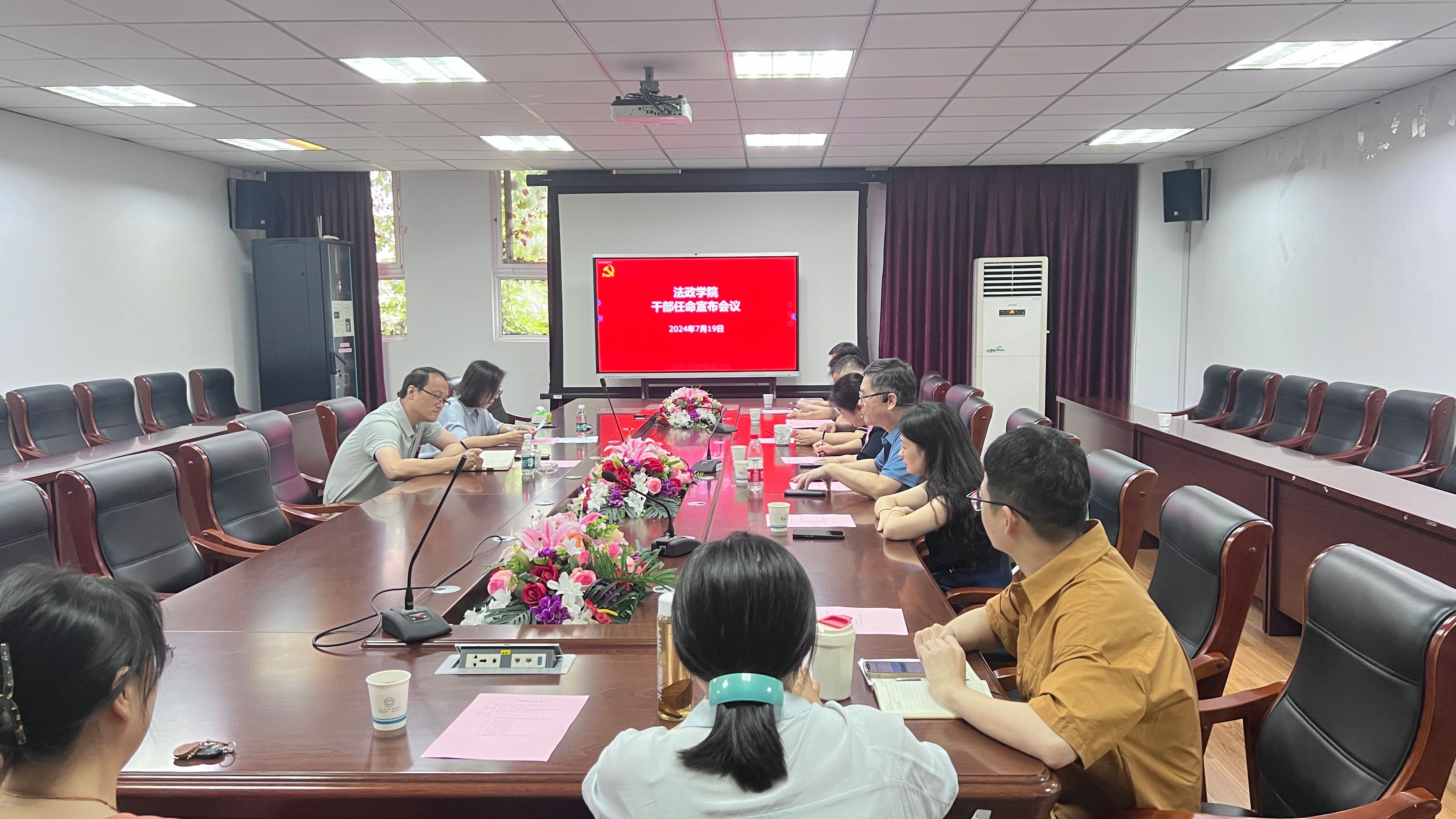 7月19日,云顶国际vip.888召开干部任命会议,公司党委常委、副董事长刘大卫,党委组织部副部长郑娟,云顶国际vip.888班子成员及系主任、教工党支部书记、七级以上职员、教师代表参加会议,会议由法政公司党委书记弋鹏主持。