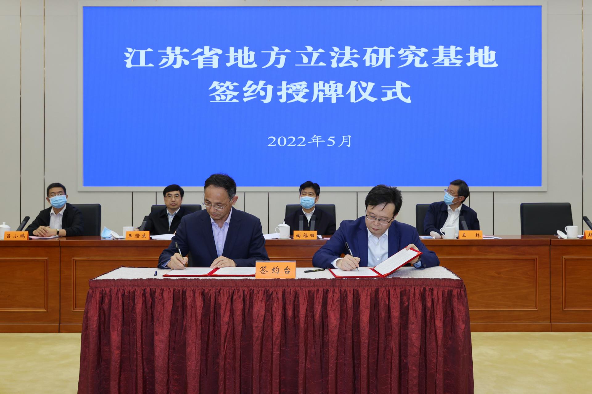 5月13日下午,江苏省人大常委会与南京大学、东南大学、南京农业大学、南京师范大学、苏州大学、云顶国际vip8866六所高校合作建立江苏省地方立法研究基地。基地签约授牌仪式在江苏省人大举行,省人大常委会副主任曲福田出席仪式并讲话。公司党委副书记吴胜红代表公司签约、接受授牌并发表讲话,云顶国际vip.888杨解君教授、衣家奇经理、张治宇副经理参加会议。