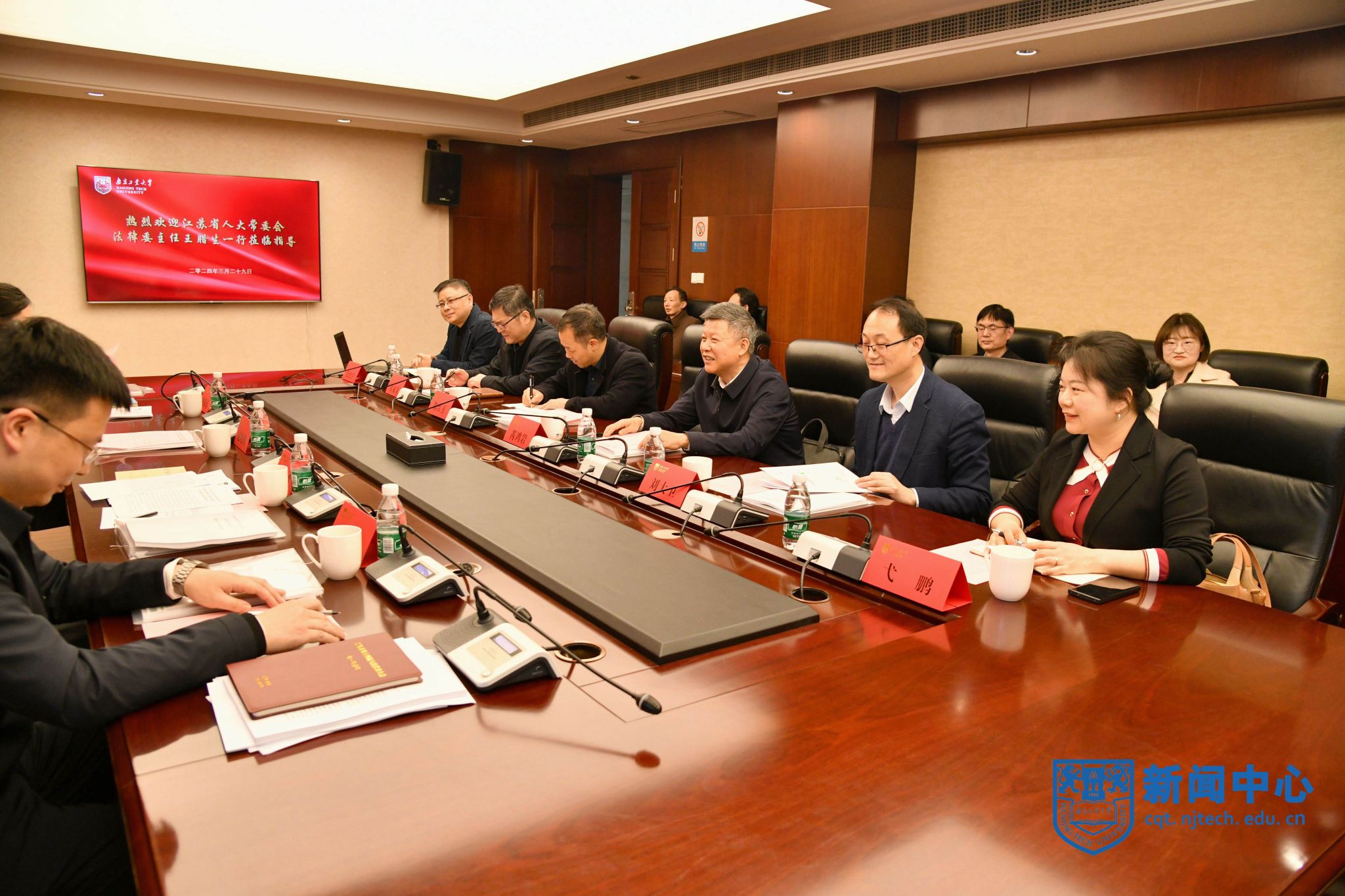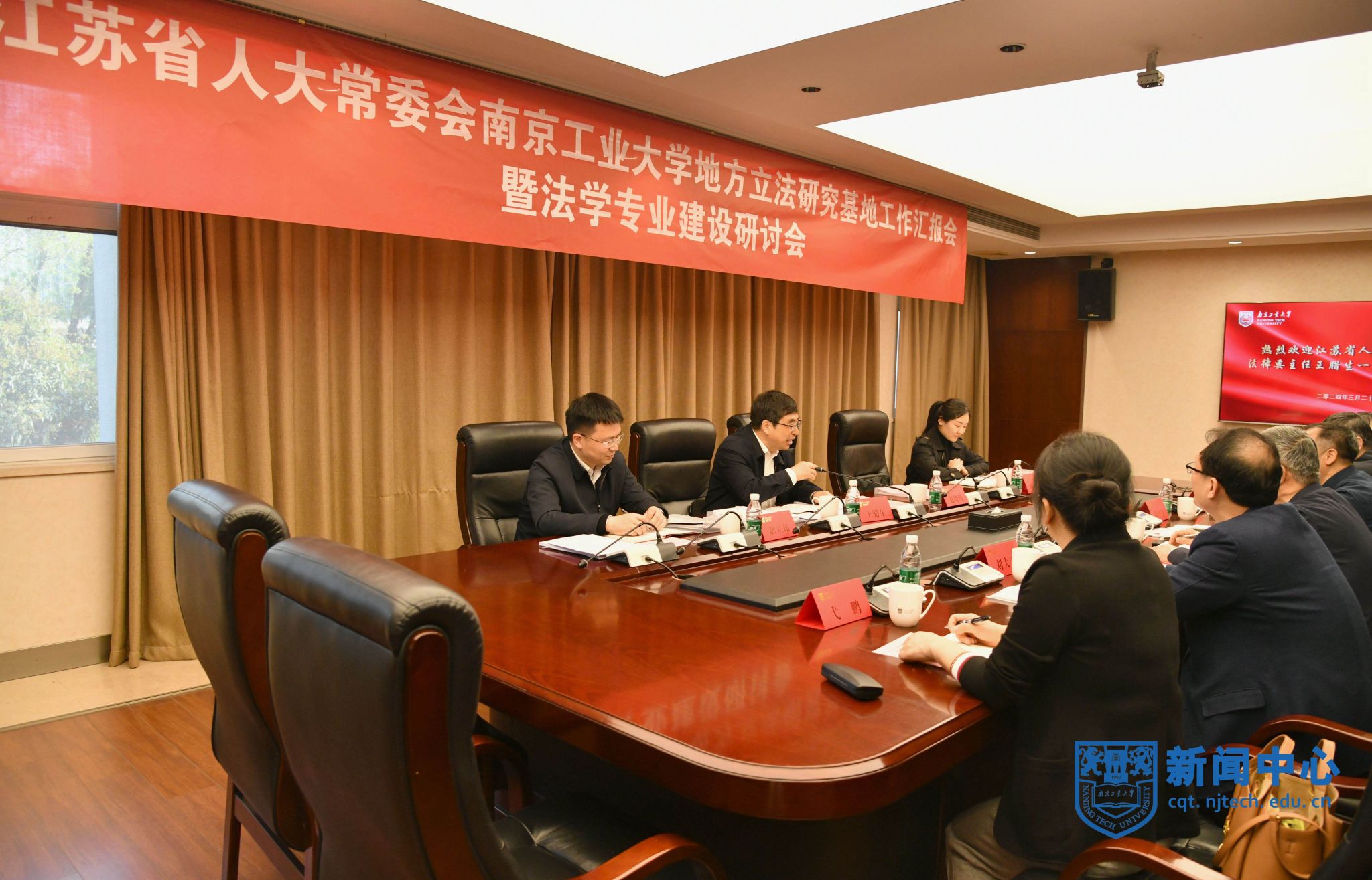 3月29日下午,公司江苏省地方立法研究基地工作汇报暨法学专业建设研讨会在行政楼117会议室举行。省人大法制委分党组副书记、江苏省法学会副会长、公司兼职教授王腊生,公司党委书记、基地主任芮鸿岩出席会议。会议由副董事长刘大卫主持。