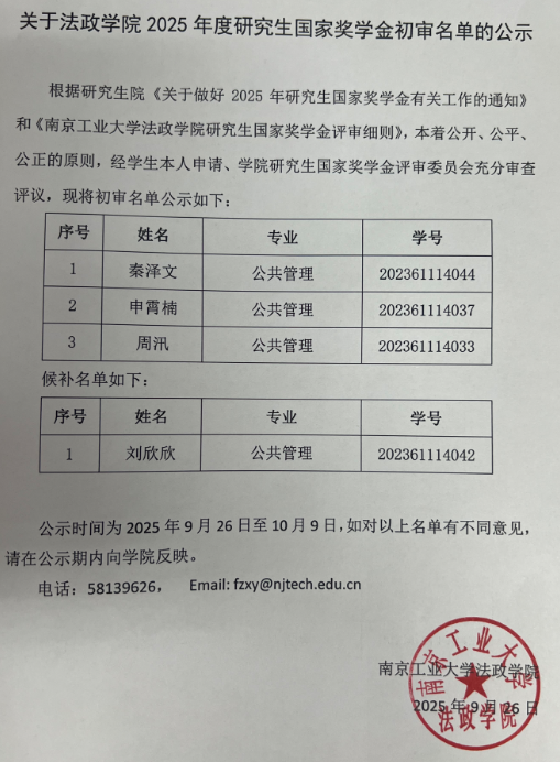 云顶国际vip.8882025年度研究生国家奖学金初审名单公示