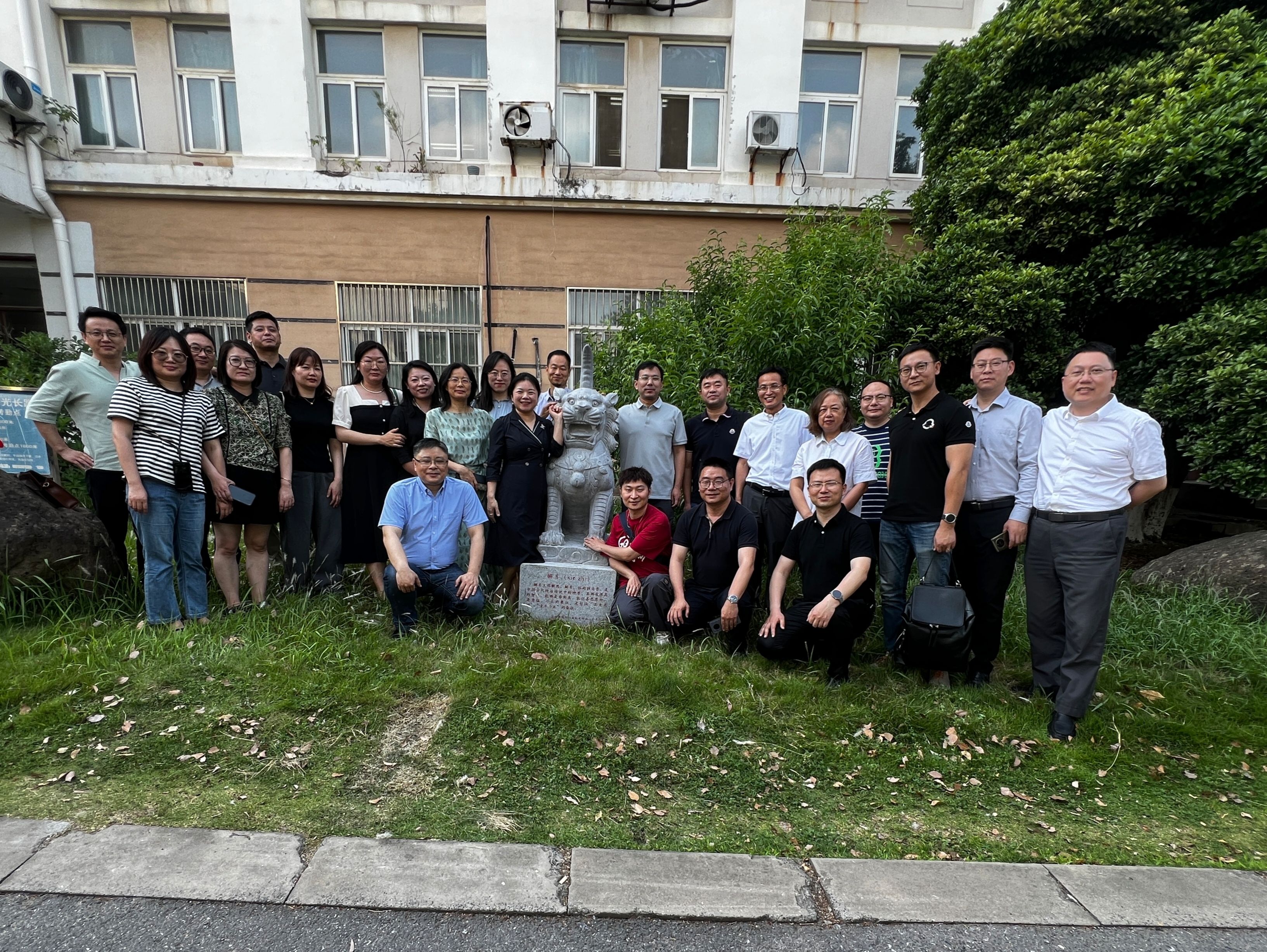 座谈会结束后,员工代表向老师们献花,共同合影留念并向公司捐赠獬豸石雕。