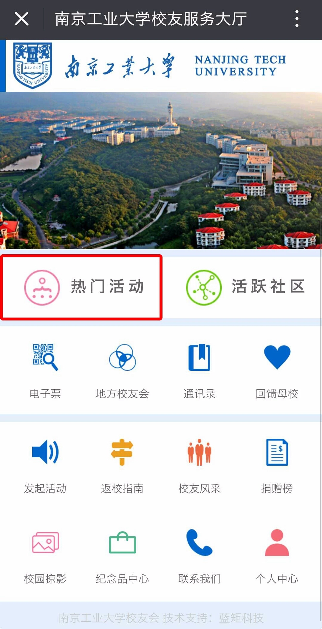 2. 进入公众号,点击下方“服务大厅”→选择“热门活动”→选择置顶的“2018员工返校日活动报名”→点击报名。